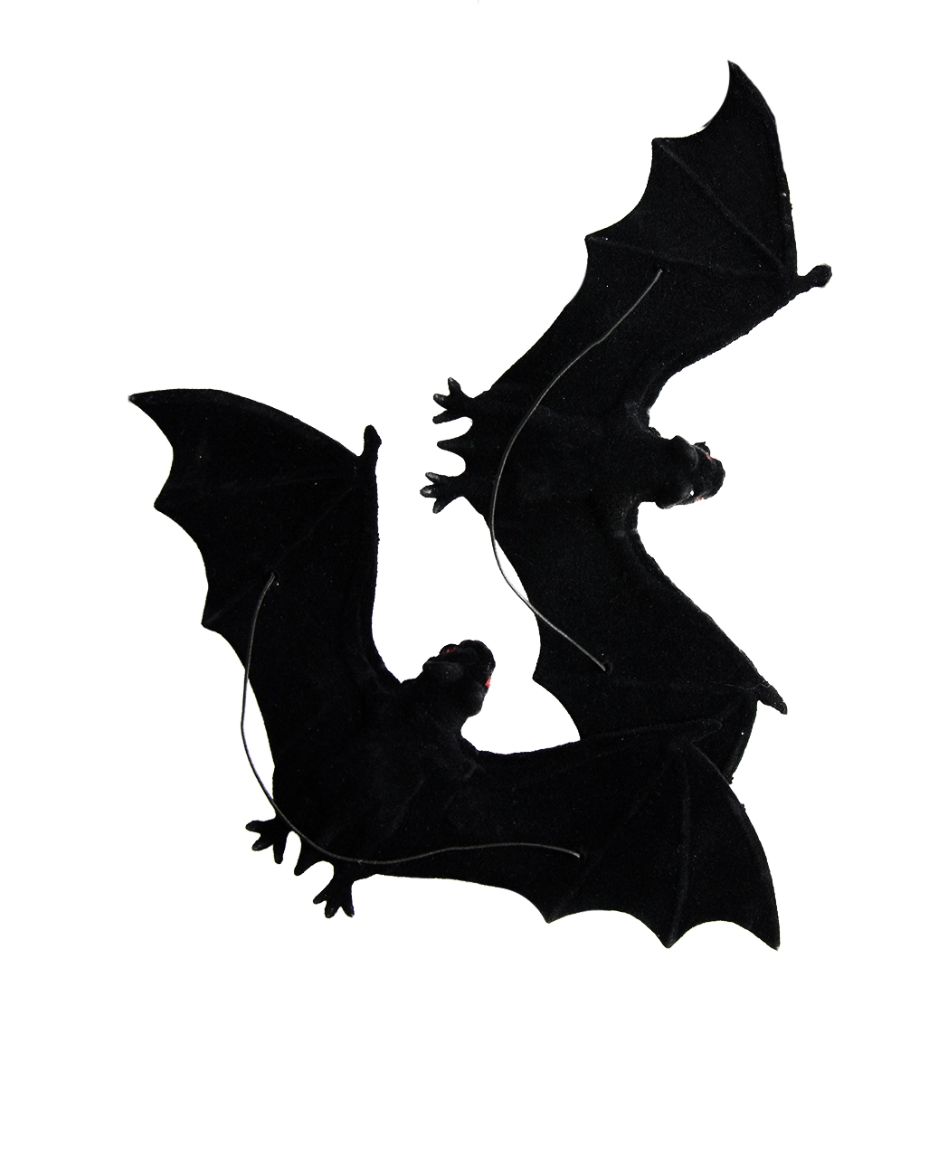 Die Deko Fledermäuse zum Aufhängen 2 St.ist aus weichem, schwarzem Vinyl und besitzt eine Flügelspannweite von ca. 20cm. Der kleine Blutsauger besitzt eine Gummischnur zum Aufhängen und lässt sich sehr gut an die verschiedensten Gegenstände wie Lampenschirm, Kronleuchter oder Decke befestigen
