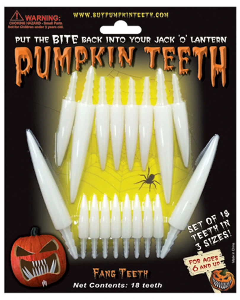 Diese 18 Kürbis Fangzähne bestehen aus Kunststoff und lassen sich leicht in jeden Kürbis bohren. Als weiteres Zubehör für deinen Halloween Kürbis haben wir das Kürbis Schnitzset dreiteilig – damit du deinen Kürbis ordentlich aushöhlen kannst!