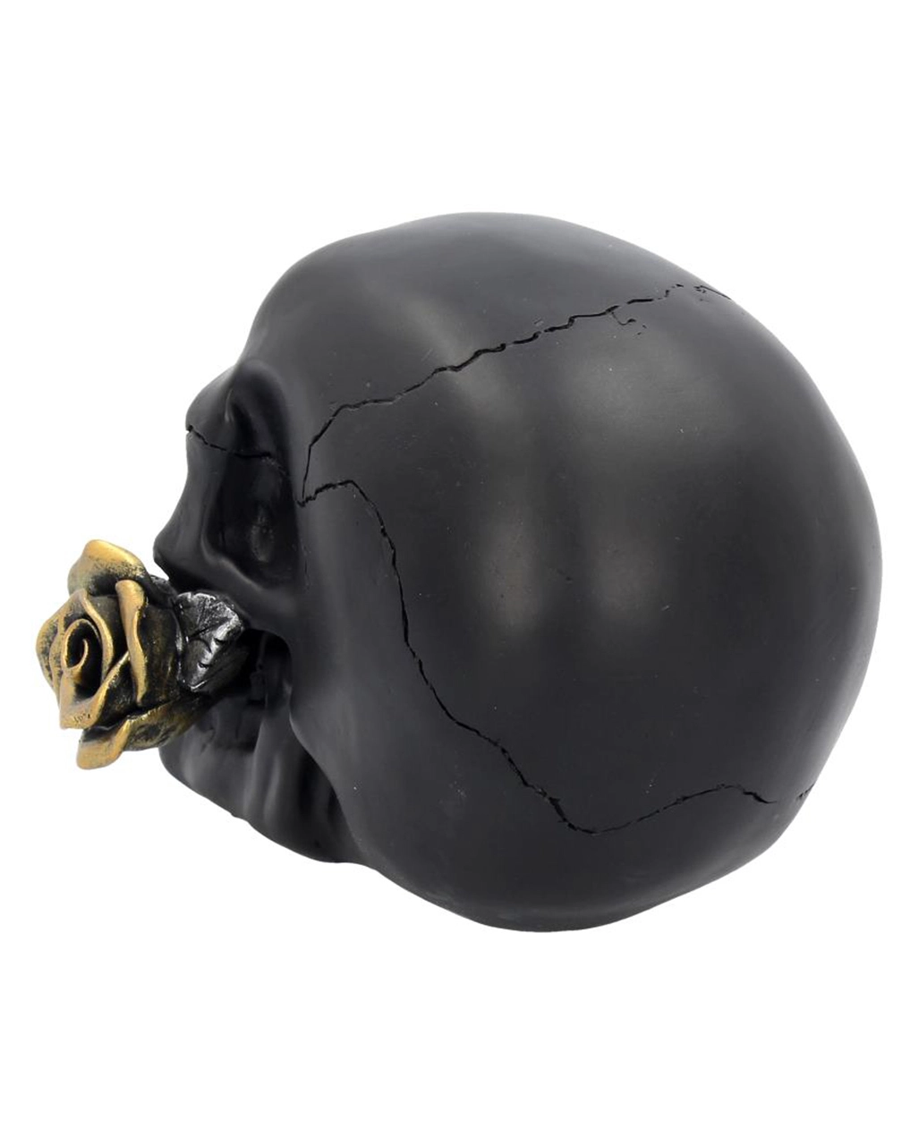 Schwarzer Totenschädel mit goldener Rose 15cm
